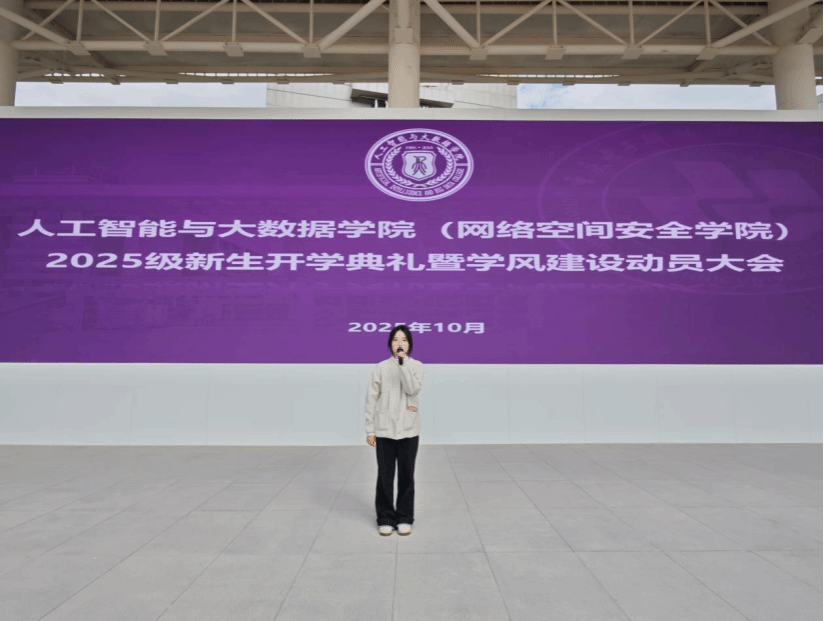 为进一步强化学风建设,凝聚师生奋进力量,人工智能与大数据学院(网络空间安全学院)于2025年10月23日在两江办学点成功开展新生开学典礼暨学风建设动员大会。