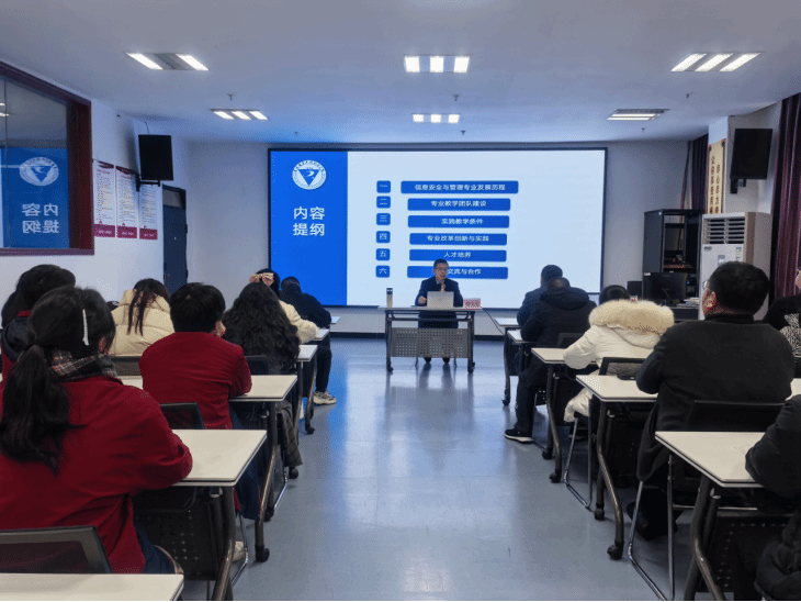 讲座现场,鲁先志老师紧扣校方需求,重点围绕专业顶层设计、师资能力提升及基地建设咨询三大维度进行了深度剖析与指导。在专业顶层设计方面,鲁先志协助学校梳理了科学的人才培养方案与课程体系,确立了专业发展的核心架构;针对教学痛点,他深入浅出地讲解了网络安全攻防、系统运维等核心模块的实战教学方法,为在场教师提供了全新的教学视角;同时,他还对专业实训室的布局与设备配置提供了建设建议,切实为高标准实训基地的落地提供了技术支撑。