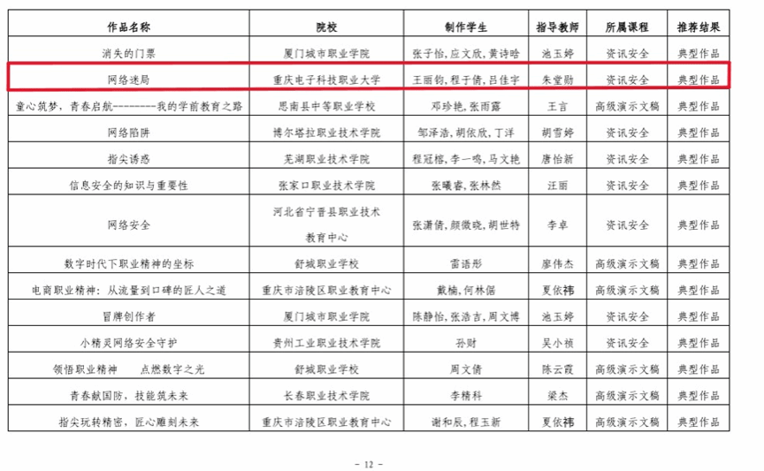 此次参评的3件作品均由千贝软件工匠工坊朱堂勋老师全程指导,紧紧围绕“资讯安全”专业核心课程体系,精准对接数字经济发展背景下企业对网络安全技能的实际需求。其中,《网络无界,安全有界》以行业真实应用场景为依托,深度融合网络边界安全核心技术规范与实际运维经验,形成了可复制、可推广的实践方案;《AI换脸骗局》聚焦当下高发的新型数字诈骗风险,系统完成了技术原理解析、骗局识别要点及针对性防范方案的设计,实用性极强,两件作品凭借扎实的专业性和突出的实用性获评“标杆作品”;《网络迷局》则创新采用场景化案例演绎模式,将抽象的网络安全知识转化为通俗易懂的内容,有效提升安全知识科普效果,获评“典型作品”。