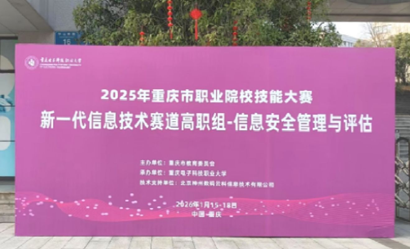 2026年1月15日至1月18日,2025年重庆市职业院校技能大赛新一代信息技术赛道(高职组)信息安全管理与评估赛项在重庆电子科技职业大学两江办学点成功举办。本次大赛由重庆市教育委员会、重庆市经济和信息化委员会、重庆市财政局、重庆市人力资源和社会保障局联合主办,重庆电子科技职业大学承办。