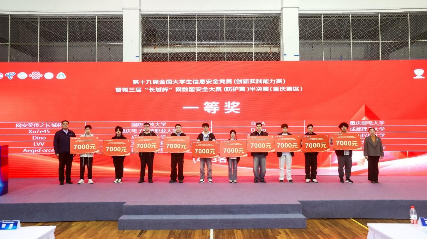 2026 年 3 月 22 日,第十九届全国大学生信息安全竞赛暨第三届 “长城杯” 网数智安全大赛西南赛区半决赛在重庆邮电大学圆满落幕。本次赛事覆盖重庆、湖南、四川、贵州、云南、西藏六省市,汇聚了来自 63 所高校的 100 支队伍、386 名信息安全领域的青年学子同台竞技、以赛会友,是全国高校信息安全领域极具影响力的高水平赛事。