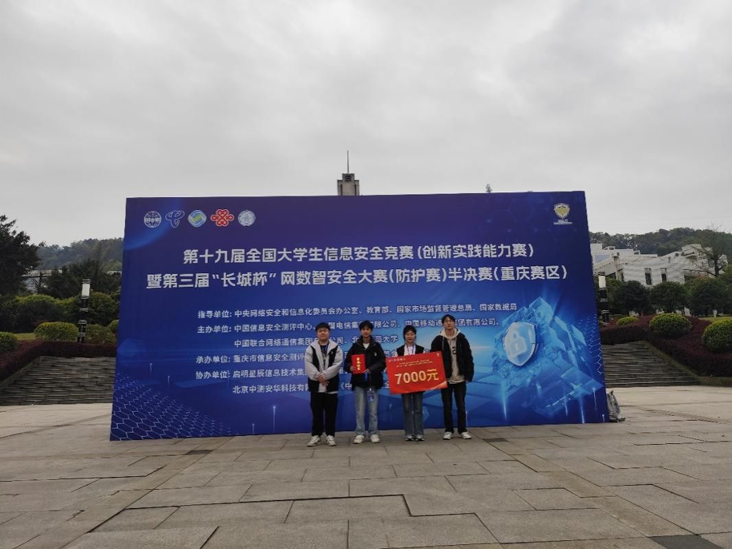 在本次比赛中,我校人工智能与大数据学院的江傲、唐开开、薛鸿元、孙雪四位同学,在指导老师冯文韬的悉心指导与系统训练下,凭借扎实的专业功底、出色的攻防能力和默契的团队协作,在激烈的角逐中奋勇争先、沉着应战,最终以第五名的优异成绩斩获本次竞赛一等奖,成功晋级全国决赛。该成绩不仅创造了我校在该项赛事中的历史最佳战绩,更是重庆所有高校参赛队伍中的最高名次,充分彰显了我校在网络空间安全相关专业领域的人才培养实力与办学成果